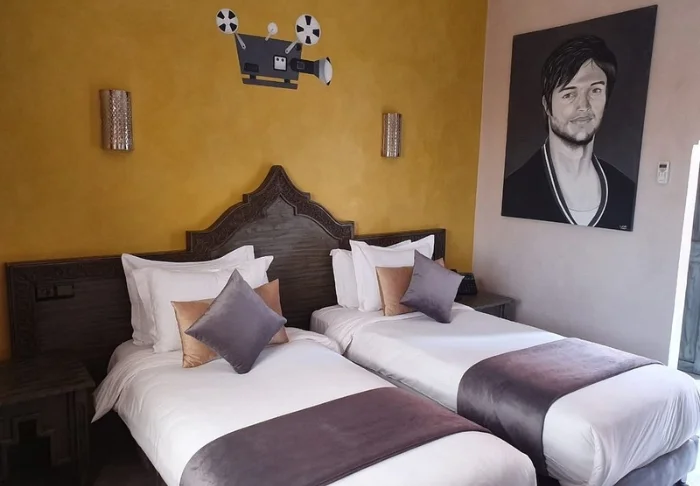 The hotel sits right next to Morocco’s answer to Hollywood, Atlas Studios, and has an unmistakable film set atmosphere. Posters and props fill both the rooms and communal areas, and the largest suites reference some of the films partly shot in the neighbouring studios.