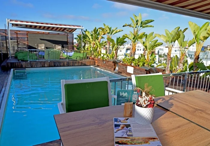 The hotel boasts a gourmet seafood restaurant on the ground floor, while the stylish rooftop offers Spanish-inspired tapas and delicious cocktails.
