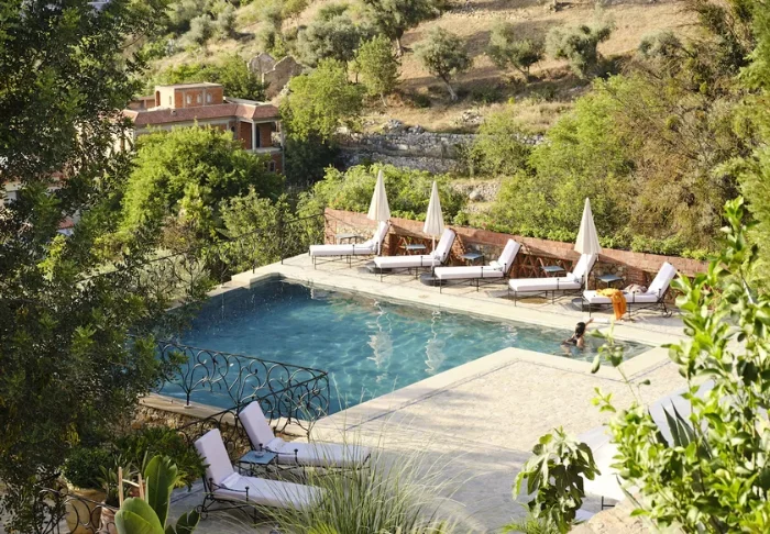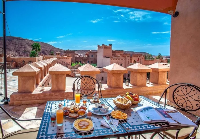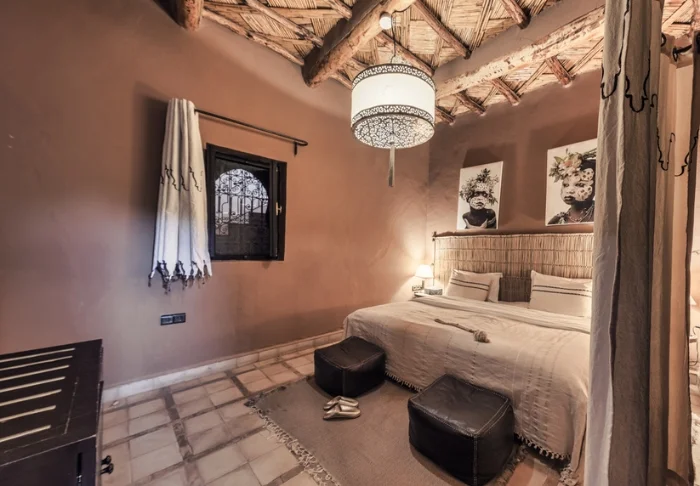 The hotel offers both rooms and small suites, all decorated in the traditional Moroccan style, featuring handcrafted details, warm colours, and furnishings made of wood and wrought iron. Many rooms boast views of the mountains or overlook the hotel’s inviting pool area. Every room comes with air conditioning, complimentary Wi-Fi, and a private bathroom.