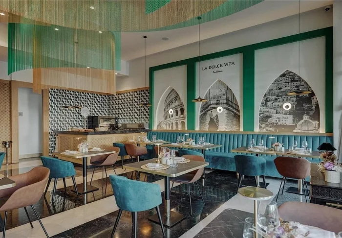 The hotel boasts a restaurant and two bar-restaurants, and guests can also enjoy massage treatments and a hammam on site.