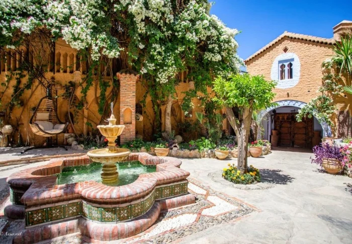 This three-star boutique hotel, located close to Ait-Ben Haddou (itself an authentic ksar), is designed as a miniature village, complete with towers, terraces, gardens, and Bedouin tents.