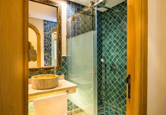 Although the building itself is new, the atmosphere is reminiscent of the original homes: stunning mosaics, intricately carved woodwork, and tranquil courtyards—only here the spaces are a little more generous, there’s more natural light, and the comforts are considerably more extensive.