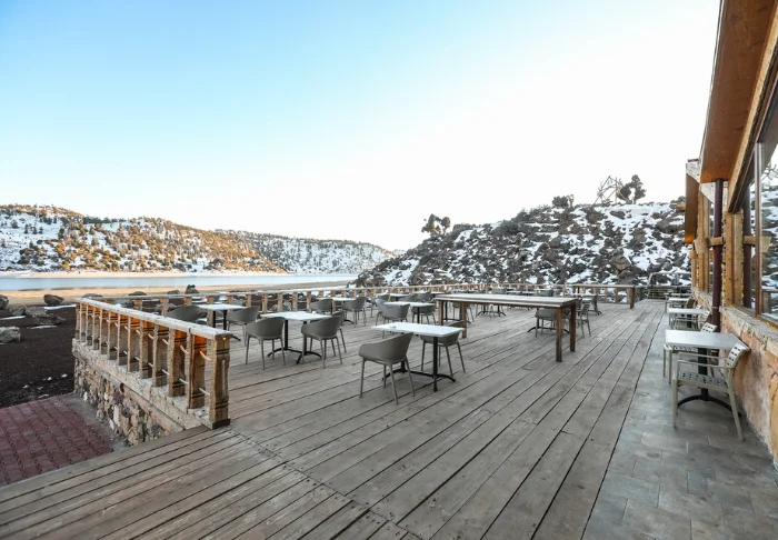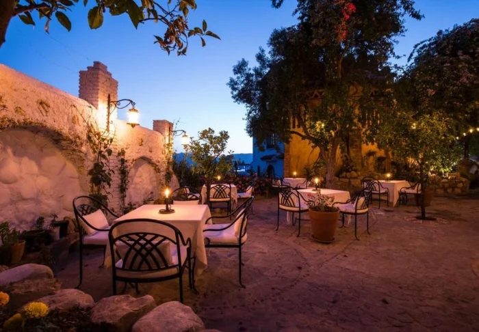 Meals are served in the on-site restaurant, and in the evening, a fire is lit outside, where you can sink into soft cushions and enjoy the endless, star-studded sky.