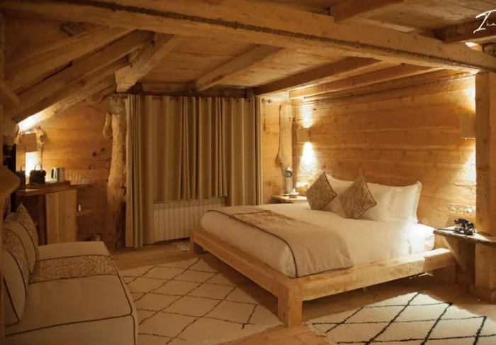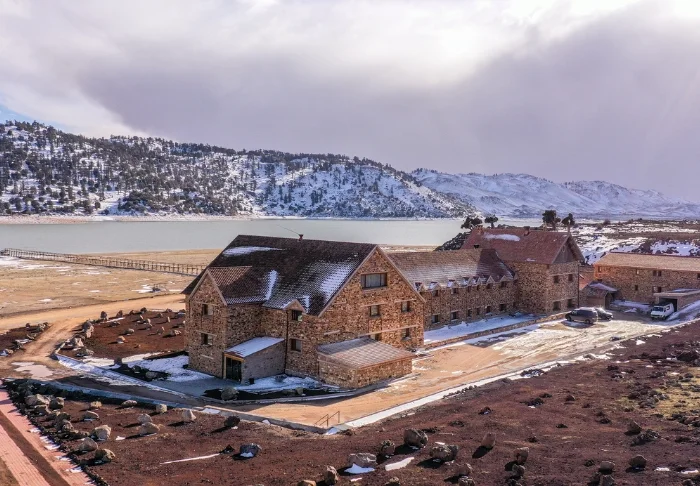 In the scenic highlands by Lake Aguelmame Sidi Ali — surrounded by cedar forest and with views of the Atlas Mountains’ peaks — you’ll find Hotel Xaluca Spa Aguelmame Sidi Ali. This charming 4-star boutique hotel was originally an old hunting and fishing refuge, now carefully restored into a relaxing mountain retreat. Built almost entirely from natural materials such as wood and stone, the hotel exudes charm and a warm, homely cosiness.