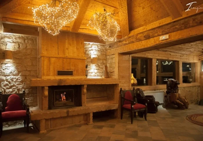 Meals are served in the rustic restaurant, and the log fire in the bar is often lit, where you can take in views of the beautiful surrounding landscape. Weather permitting, tables are laid outside on the terrace.