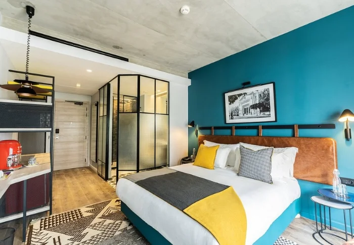The hotel offers 149 rooms in various sizes. Each room is tastefully decorated with vibrant colours and comes equipped with air conditioning, a mini fridge, tea and coffee-making facilities, a flat-screen TV, and complimentary Wi-Fi.