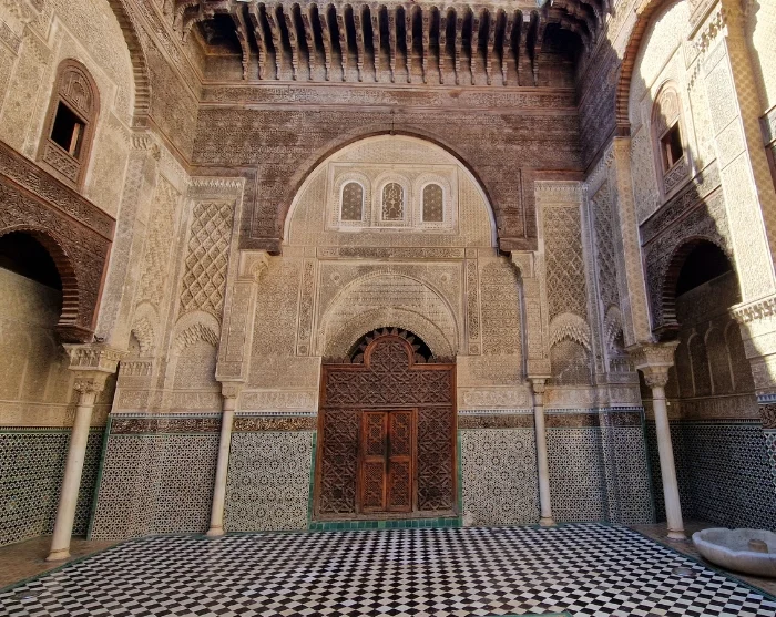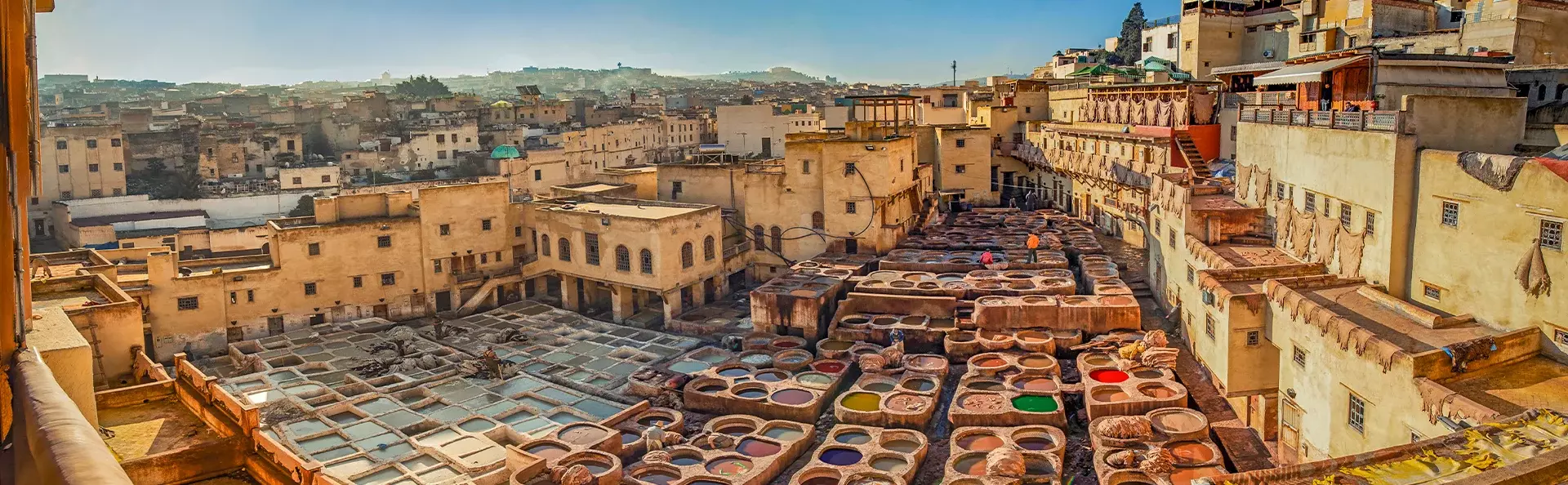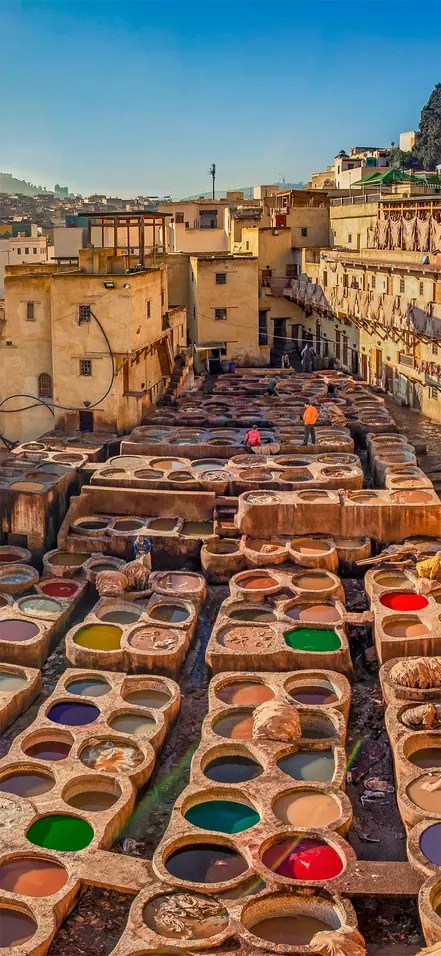 Fes is Morocco’s oldest royal city and boasts the country’s largest and most authentic medina. Founded in the year 789, the city has, over the centuries, flourished into a vibrant historical centre, criss-crossed by more than 9,000 narrow streets and alleys. Here, you’ll find everything from carpet workshops and forges to the iconic tanneries, where brightly coloured vats and the unmistakable scent of leather reflect the city’s proud craft traditions. With its densely packed buildings, bustling marketplaces, and historic madrasas and mosques, the medina is a captivating maze, where history, culture, and everyday life continue to blend seamlessly side by side.