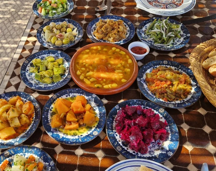 Today’s lunch will be enjoyed at one of Morocco’s delightful vineyards, benefitting from the mild climate and fertile soil of this part of the country. While Morocco isn’t the first place that springs to mind when you think of winemaking, the country actually produces some excellent wines – red, white, and rosé alike.