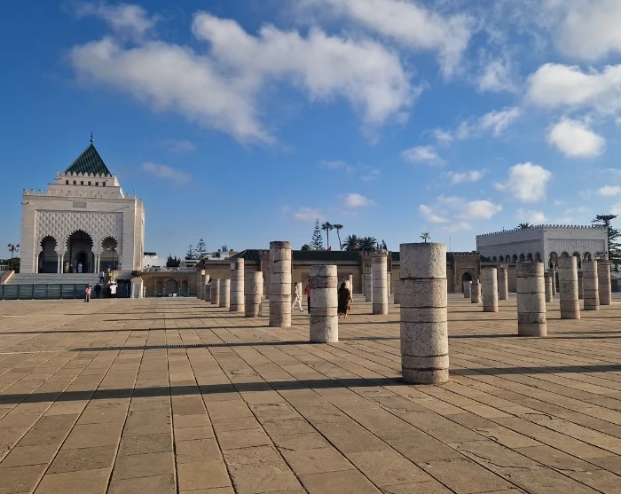 Your day will begin with a guided sightseeing tour of Rabat, which has been Morocco’s capital since 1912. The French originally designated Rabat as the capital when France established a protectorate over Morocco. Its wide boulevards, numerous administrative buildings, and strategic coastal location made the city so ideal as the nation’s centre that when the French departed in 1956, the king chose to keep Rabat as the capital. You’ll also visit the Hassan Tower, the minaret (the tower from which the call to prayer is made) of an unfinished mosque. This was intended to be the largest mosque in the world, but sadly the caliph, Yaqub al-Mansur, died in 1199 before it was completed, and construction was abandoned. Today, visitors can see the remaining columns and the foundations of the structure.