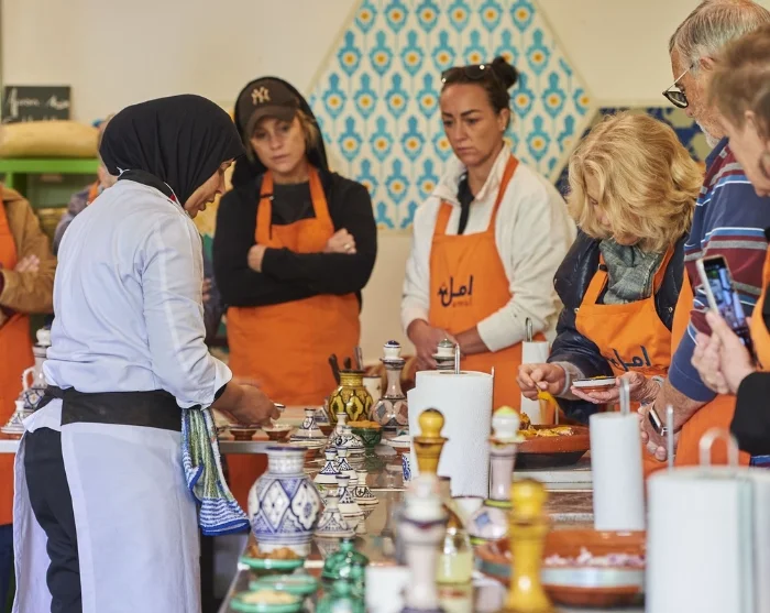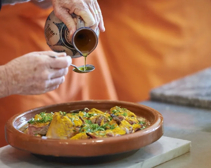 In the morning, you’ll be picked up from your hotel and taken to an experience that’s a little out of the ordinary. Food plays a huge part in any tour of Morocco. Fresh ingredients are prepared in a variety of aromatic ways, with plenty of spices that create rich, wonderful combinations of sweet and savoury. There’s a riot of colours, so all of your senses come alive.