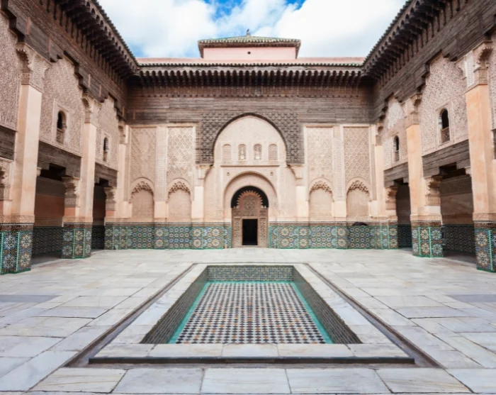 The medina forms the historic heart of the city. This is where you’ll find the old mosques and madrasas, where artisans work and where bustling trade takes place. The streets are famously narrow and maze-like; legend has it that such a layout allowed residents to hide from enemies, who would certainly get lost unless they were born inside the medina’s walls. But there’s no need to worry—your guide knows these lanes like the back of their hand and will smoothly lead you through even the most winding alleys. Your guide will usually ask if you have any particular interests or requests for your tour of the medina, and will tailor the route accordingly. We highly recommend a visit to the Ben Youssef Madrasa, a true architectural gem famed for its harmonious, symmetrical design, and exquisite decoration. The main square of the medina, Jemaa el-Fna, is also a must-see. By day, it might seem a little quiet, but it’s worth knowing your way around—it’s in the evenings that the square truly comes alive in scenes worthy of an Indiana Jones film! Snake charmers, food stalls, henna artists, and juice vendors all vie for your attention here. Watching over it all is the Koutoubia Minaret, both the city’s most iconic landmark and its tallest building.