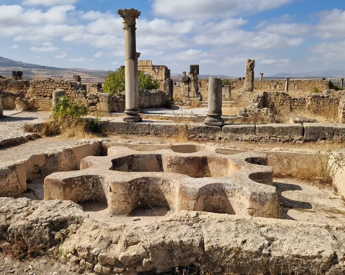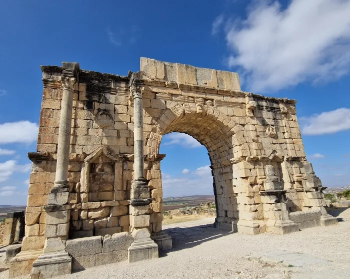 From Meknès, the journey will continue to the impressive Roman ruins of Volubilis, located just over 30 kilometres north of the city. Standing by the “Triumphal Arch” in this former Roman settlement, amidst columns and ancient mosaics, taking in the sweeping views of lush olive groves and fertile fields, it becomes quite clear why the Romans chose this very spot for their city.
