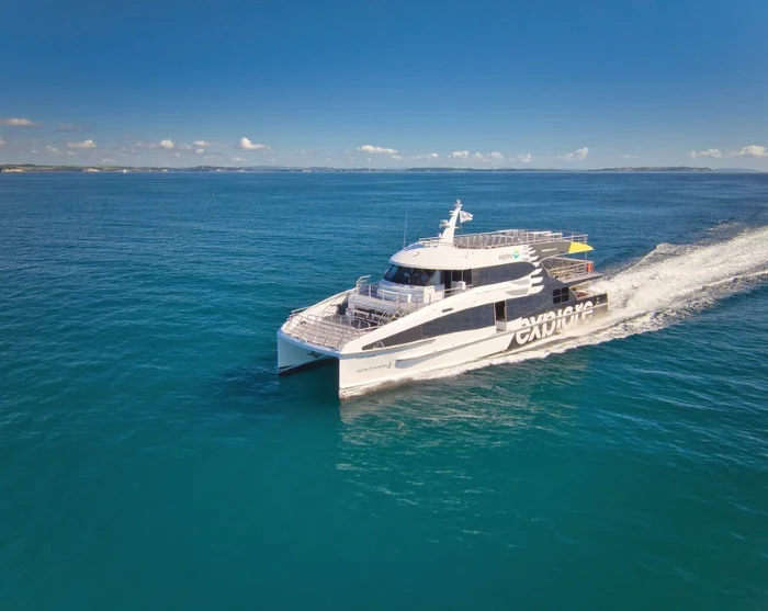 The tour begins at Viaduct Harbour in Auckland, where you’ll catch a catamaran ferry to Waiheke Island. The ferry ride takes you through the picturesque Hauraki Gulf with views of islands and coastlines before arriving at Man O’ War Bay on the island’s eastern side.