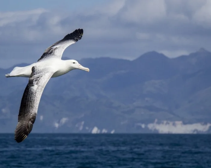 Sperm whales can be spotted in the area all year round and are typically the most common. Depending on the season, you might be fortunate enough to see migrating humpback whales, pilot whales, blue whales, southern right whales, and even orcas. New Zealand fur seals, dolphins, and an array of seabirds such as albatrosses can also often be seen.