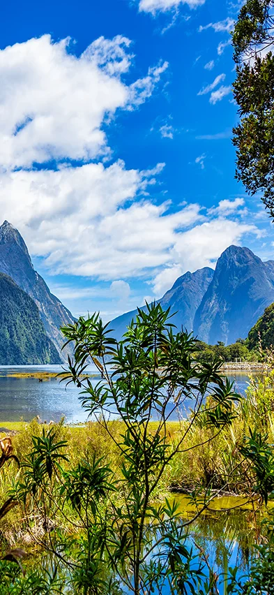 From the North Island, you’ll fly south to Christchurch—a green and charming city with a distinct British feel. From here, your journey takes you through magnificent landscapes to Aoraki/Mt. Cook, New Zealand’s highest peak, and onwards to picturesque Queenstown, beautifully nestled among lakes and mountains. Here, an unforgettable excursion to the spectacular fjord Milford Sound awaits, where you’ll cruise between steep cliffs and tumbling waterfalls.