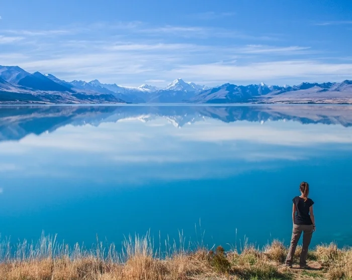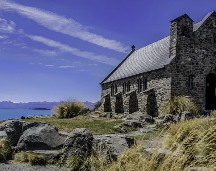 We recommend making a stop at Lake Tekapo (Takapō), where the turquoise waters and the small stone church, the Church of the Good Shepherd, create an iconic view.