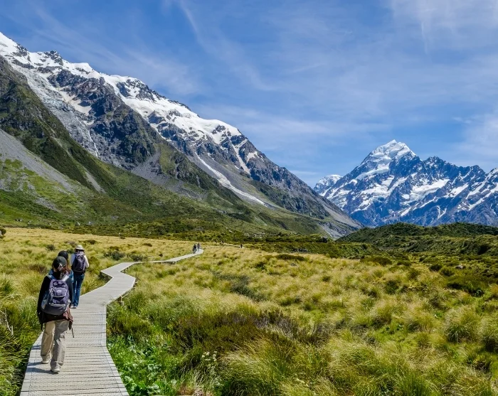 Here, you can set off on self-guided hikes in the area, available in various lengths and levels of difficulty – for example, the Kea Point Track (easy – approx. 3 km), the Tasman Glacier View Track (easy – approx. 2.5 km), and the Hooker Valley Track (easy – approx. 10 km). Please note that part of the Hooker Valley Track is currently closed due to erosion and the construction of a new suspension bridge, expected to be completed by the end of 2026.