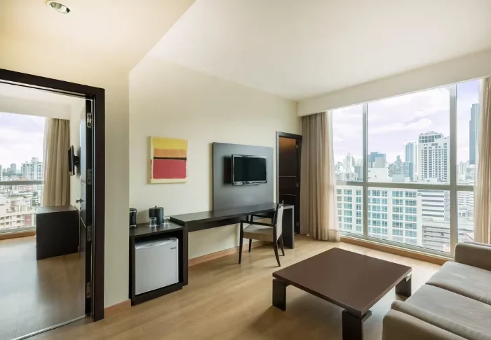 The hotel features 92 bright and modern rooms decorated in a simple, minimalist style. All rooms come equipped with air conditioning, Wi-Fi, a TV, a minibar, and tea and coffee-making facilities. Large windows offer a wonderful view of the vibrant city life below.