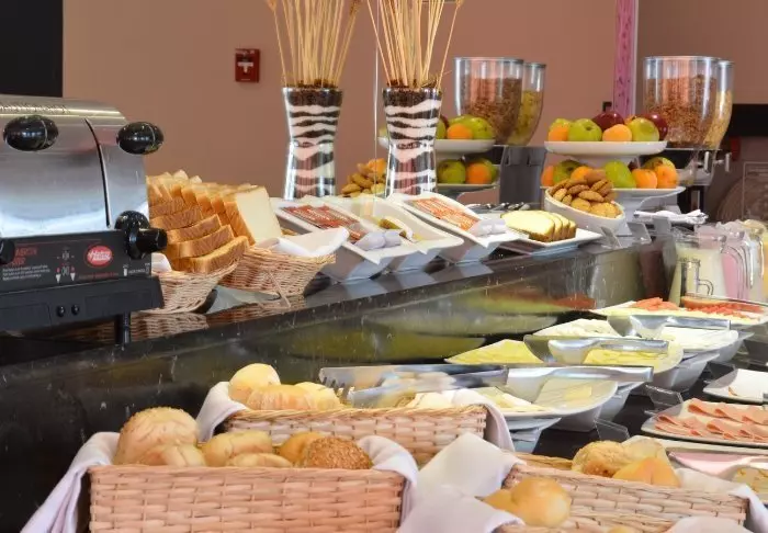 At the hotel’s restaurant, you can start the day with breakfast, which is included. Here, you have a choice of breakfast cereals, bread, cheese, ham, juice, etc.