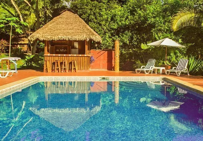 If you need a refreshing dip after the day’s exciting excursions, there is a small swimming pool in the lush garden. There is also a pool bar, where you can purchase cold drinks and delicious cocktails.