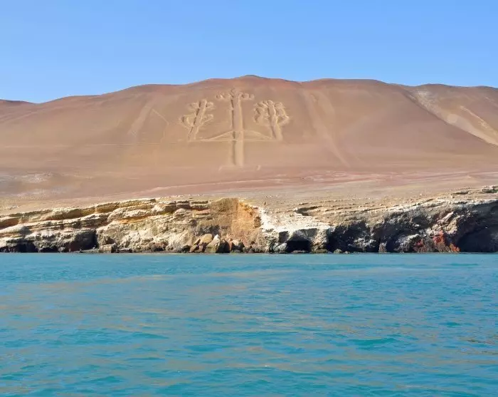 On the boat trip, you will also see ‘La Candelabra’ at the northernmost point of the Paracas Peninsula. La Candelabra is a huge drawing in the dry desert sand, depicting a three-armed candlestick or a cactus, which was a symbol of power in the Chavín culture. It is not known who made the drawing or its purpose.