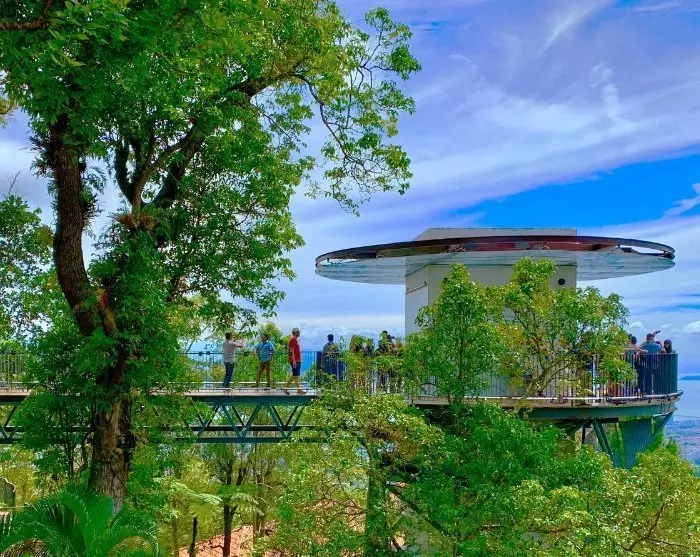 Near George Town, you can enjoy stunning natural experiences. A short drive from here is Penang Hill, which stands at 833 meters above sea level, making it the highest point on Penang. Penang Hill offers a breathtaking view over George Town and the surrounding sea. It is also covered with lush rainforest, home to the park The Habitat, where you can encounter various bird species, curious squirrels, and long-tailed macaques. The Habitat also features spectacular viewpoints, canopy walkways, and interactive exhibits.