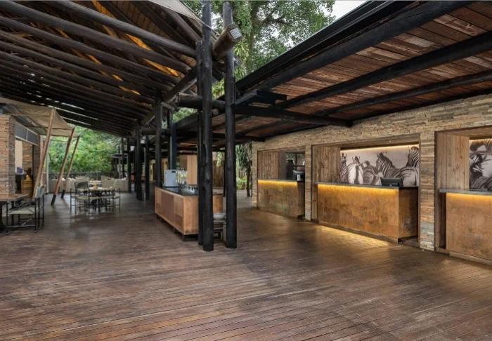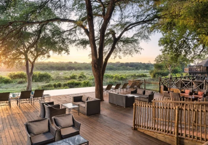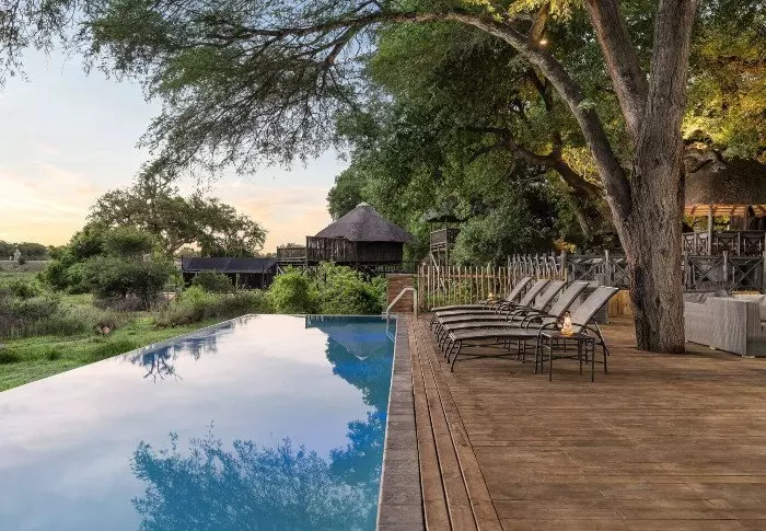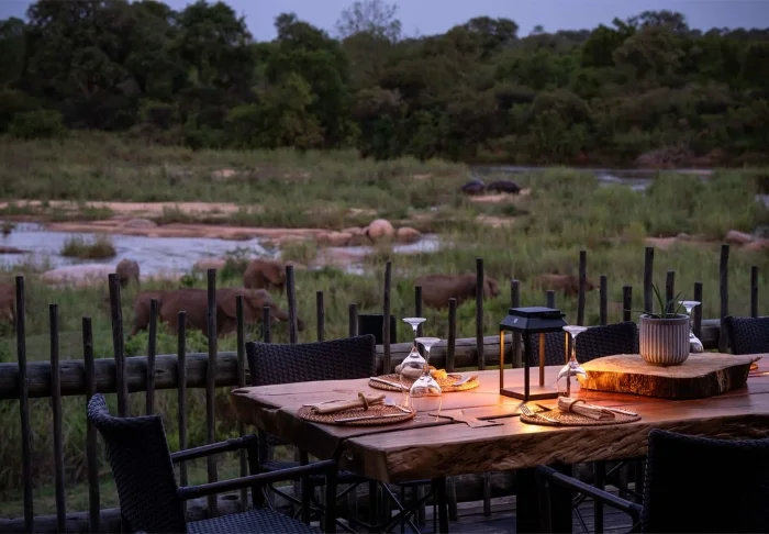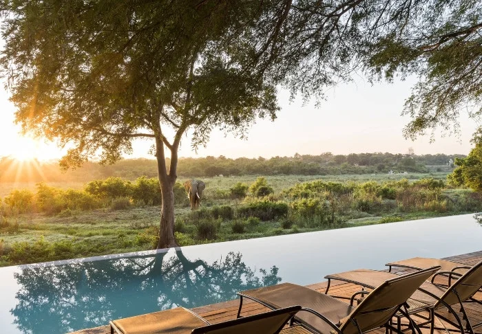 Located by one of the pools, the cosy lounge area offers a view of the Kruger National Park on the other side of the Sabie River. In the very early morning and at the end of the day, the light here is incredible, and if you’re lucky, perhaps a pride of elephants will come by to bathe in the river.