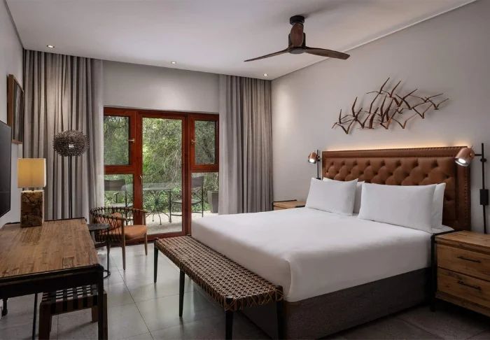 The rooms are spacious and inviting, and each one features a view of the garden and its bird and animal life. They are fully equipped with air conditioning, hair dryers, safes, international power outlets, and TV.