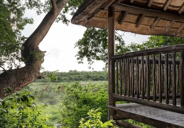 The camp is located in a private section within the Kruger National Park itself, and from the pool, you have an excellent view facing the National Park. You can often see a bloat of hippopotamuses in the river just beyond the big grassy field, and there are benches (and a fence!) set up for you to comfortably and peacefully sit and listen to them puff and frolic in the water below.
