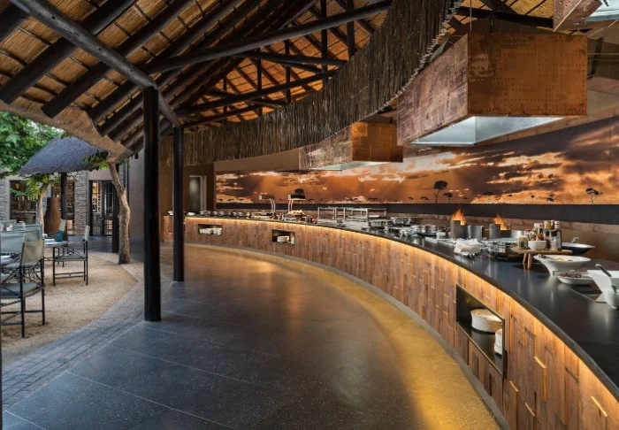 The camp offers a wonderful restaurant, a lively bar, an excellent little shop, as well as multiple “bomas”, typical South African fire pits where food is served under open skies.