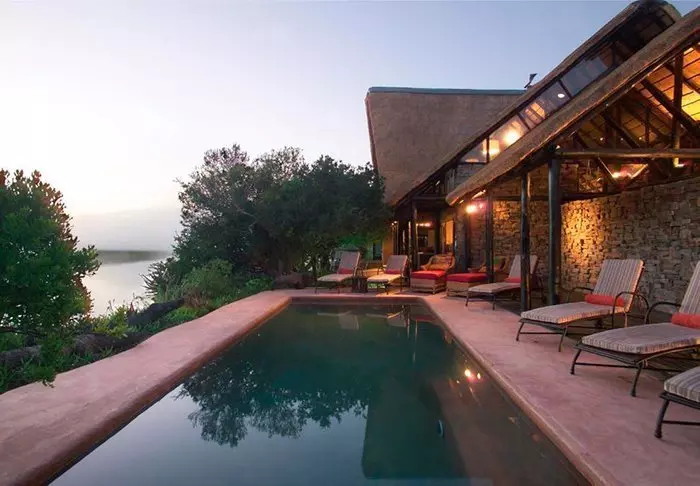 The 4-star River Lodge is located in the Kariega Game Reserve on the banks of – and almost extending into – Bushman’s River. The way that the restaurant, bar and swimming pool have been constructed almost makes you feel that you are surrounded by the still, reflective water of the river. The lodge has a unique viewing terrace built out over the river. This is the perfect place to sip a drink at sunset, or to enjoy dinner under a starry sky. Privacy is the defining feature of the lodge and its suites, making this the ideal place to enjoy some peace and quiet. The lodge comprises of ten exclusive, luxury suites with thatched roofs, laid out at intervals along the river bank. The suites are very spacious and decorated with examples of African art and crafts. Each suite has its own viewing terrace, air conditioning, ceiling fan, internet, safe and telephone, as well as a well-appointed bathroom with a bathtub.