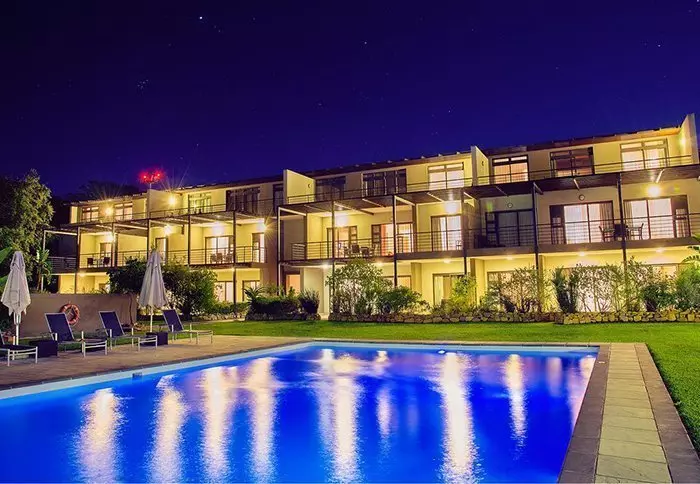 The 5-star Simola Hotel Country Club is probably the hotel in Knysna with the best view. The hotel is located high in the hills a little outside the town centre, and from the hotel restaurant, you have the most amazing view of the lagoon and the surrounding countryside. Next to the hotel is one of the country’s best golf courses, and the surroundings are ideal for walks or runs along the numerous trails around the hotel.