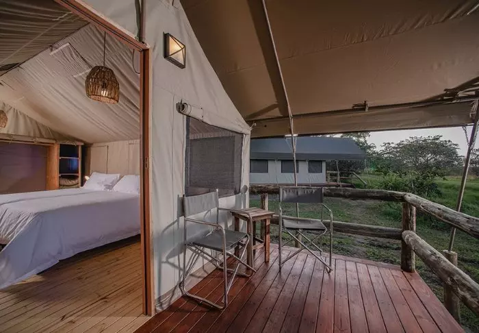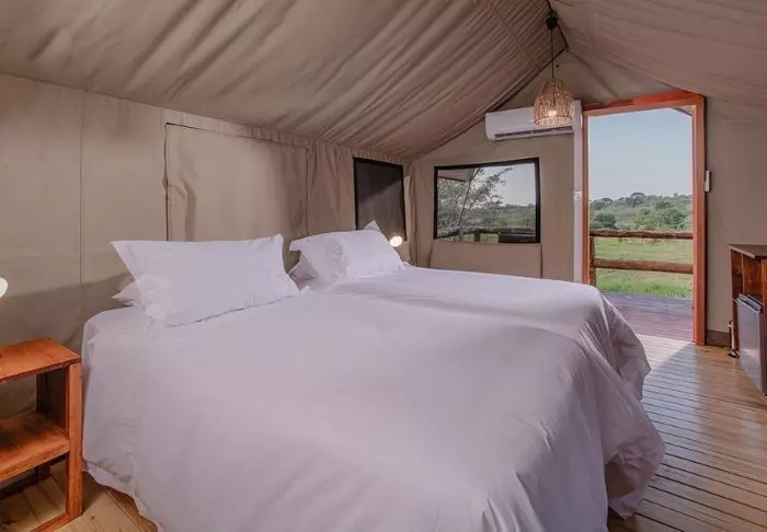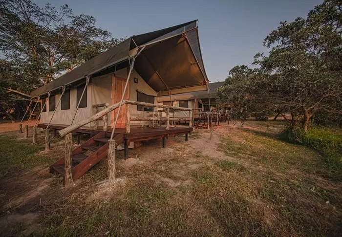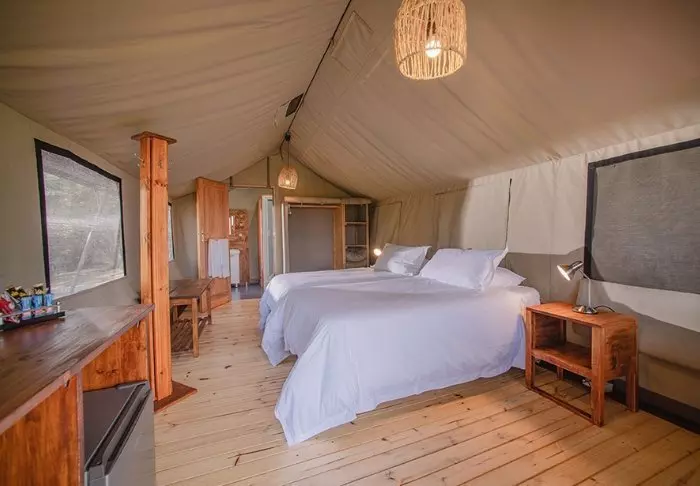 Here, you stay in spacious, beautiful canvas tents that are raised above ground on platforms. The tents feature modern facilities such as wooden flooring, electricity, air conditioning, good toilet and bath facilities, and options for making tea and coffee. Thanks to the canvas walls, you can still hear both hear and smell the wilderness outside. Here, you can stay in tents with double beds, as well as tents that are especially suited for families. Each tent has its own veranda.
