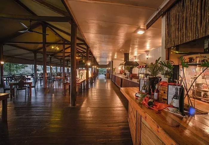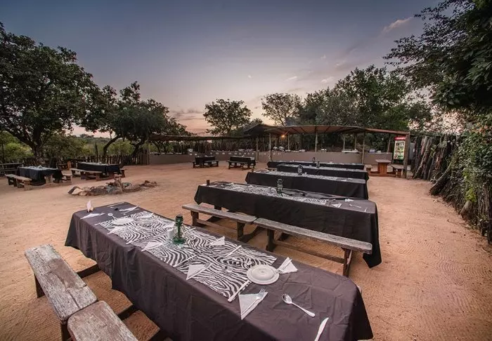 The camp offers a wonderful restaurant, a lively bar, an excellent little shop, as well as multiple “bomas”, typical South African fire pits where food is served under open skies.