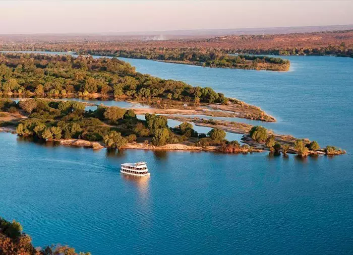 The first part of the tour is like a river safari. You sail at a sedate pace along the many channels between the islands in the Zambezi. The trees on the river banks and on the small islands in the middle of the river attract a wealth of birds, and here and there a hippo pops its head above water. The crocodiles resemble tree trunks, lying half in the water, half ashore. The elephants slide into the water and swim across to the islands – always on the look-out for a new tree to rub up against. A snack and a drink are enjoyed on one of the small islands in the middle of the river,