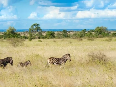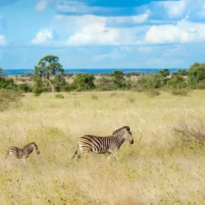 Here, you can find an impressive nature area with dense vegetation, open fields and forest areas, and the rivers that sustain the animals who live here. On the savannah in Kruger, you will have rich opportunities to spot the national park’s iconic animal life, including classic safari animals like giraffes, zebras, and hippopotamuses, Africa’s Big Five, and more endangered animal species such as the wild dog.