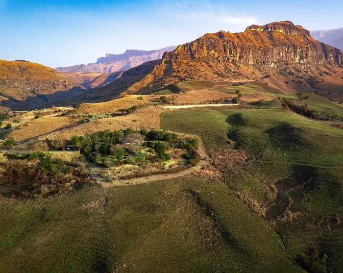 From Nambiti, you’ll drive south. Soon you’ll leave the reserve’s savannah behind and will be once more surrounded by rolling hills and green pastures. After a couple of hours’ driving (depending on traffic and how many stops you make along the way), the jagged mountains slowly begin to reappear on the horizon.