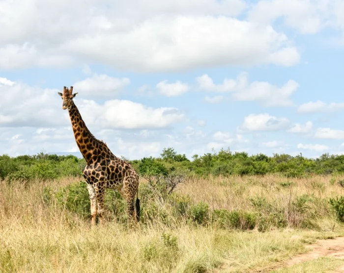 The landscape changes dramatically today. From the high, stark cliffs of the Drakensberg, the terrain opens out into an almost flat savannah dotted with low shrubs. Despite the big change in scenery, the drive isn’t long and you’ll arrive in Nambiti around lunchtime.