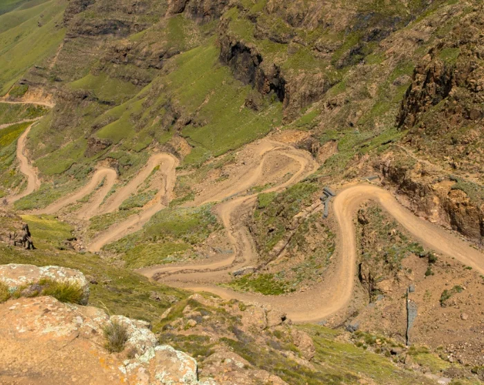 As you climb higher, the landscape becomes more rugged and open. The vegetation changes, the temperature often drops a little, and the views grow ever more dramatic. The final kilometres towards Sani Pass itself are marked by steep gradients and tight hairpin bends, where you can clearly feel the altitude and the area’s alpine character.