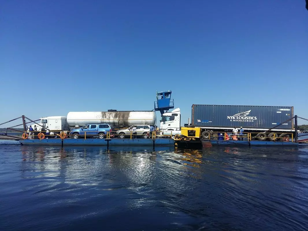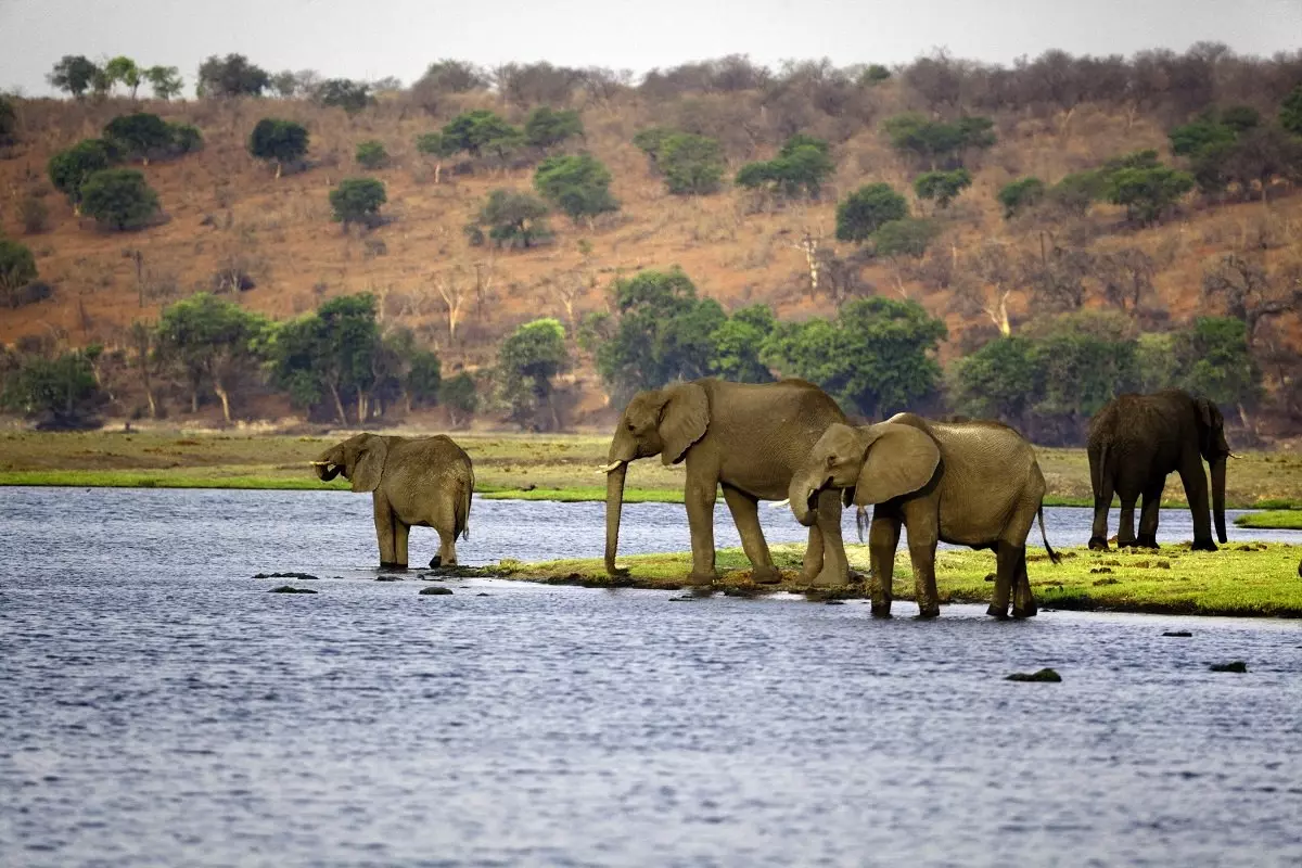 You will be picked up from the hotel and set off for Botswana, a drive of around 4–5 hours, depending on the waiting time at the border crossing in Kazungula. Kazungula is a small village located right on the banks of the Zambezi River where no fewer than four different countries meet: Zambia, Zimbabwe, Botswana and Namibia. Zambia and Botswana are linked by a bridge. A fun fact: The bridge arches in the way it does, so as not to clash with the boundaries of Namibia and Zimbabwe.