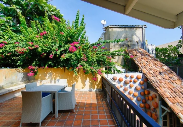 Staying at Parawa House is an experience in itself. Over the years, the hotel has been carefully preserved, maintaining its original features such as intricately carved wooden doors, colourful stained-glass windows, and quirky architectural touches. Together, these create an atmosphere of nostalgia and tranquillity. For another peaceful moment, head to the top floor, where you can relax on a small sun terrace adorned with vibrant pink bougainvillaea after a rewarding day of exploration.