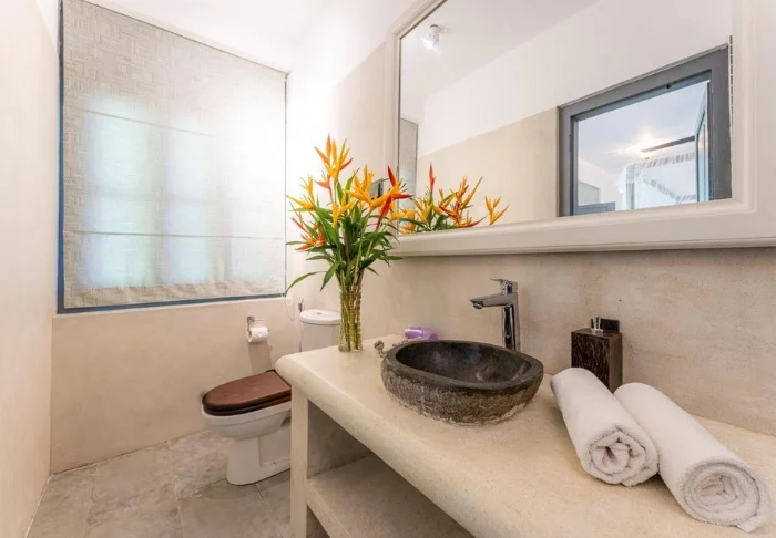 Your accommodation is a spacious Superior Room with rustic décor, where dark wooden furniture and bright textiles create a warm, local atmosphere. From your private balcony, you can gaze out over the gardens and the ocean, with swaying palms and the sound of waves providing the perfect backdrop for your morning coffee or a peaceful moment with a book. All rooms feature air conditioning, Wi-Fi, a ceiling fan, a safety box, a minibar, a telephone, a TV, tea and coffee making facilities, and a bathroom with a walk-in shower, a bathrobe, slippers, and complimentary toiletries.