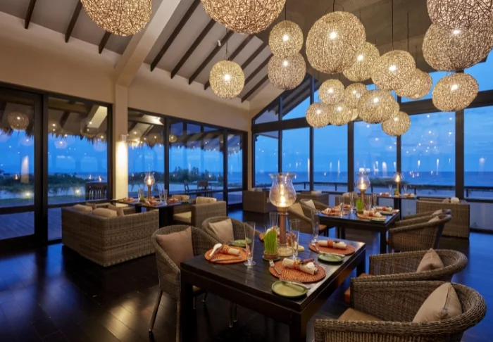 Your half board is served in the hotel’s main restaurant, where you can look forward to delicious culinary experiences in both the morning and evening. Here, you’ll discover a lavish buffet overflowing with tempting delicacies, including treats prepared at a range of outdoor live cooking stations, offering everything from pancakes and omelettes to grilled fish and Asian specialities. Whether you choose to dine inside or al fresco, you’ll be able to savour stunning views of the surrounding nature and the starry sky above.