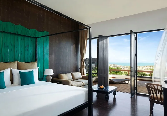 During your stay, you’ll enjoy a Superior Room as standard. Elegantly decorated with natural touches, your room is equipped with everything you need – air conditioning, Wi-Fi, a minibar, a safety box, a TV, coffee and tea making facilities, and bottled mineral water. The spacious bathroom features an open shower, a bathrobe and slippers, and luxurious toiletries. There’s also a comfortable seating area with a sofa, as well as a private balcony where you can watch the sunrise and take in the resort’s raw, natural surroundings.