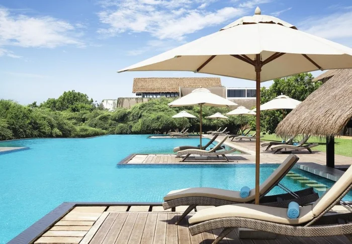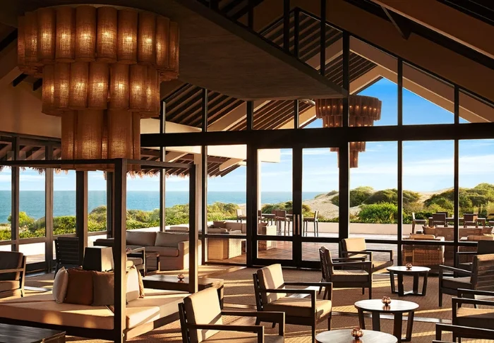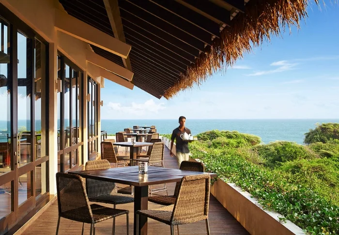 The hotel lies just a few steps from the beach, where lifeguards keep a watchful eye on both the waves and the wildlife. Elephants, monitor lizards, and monkeys are all free to roam here, often venturing right onto the hotel grounds on their own little adventures. Nestled among the sand dunes, the hotel’s beach bar offers the ideal spot to sip a drink while soaking in the captivating views.