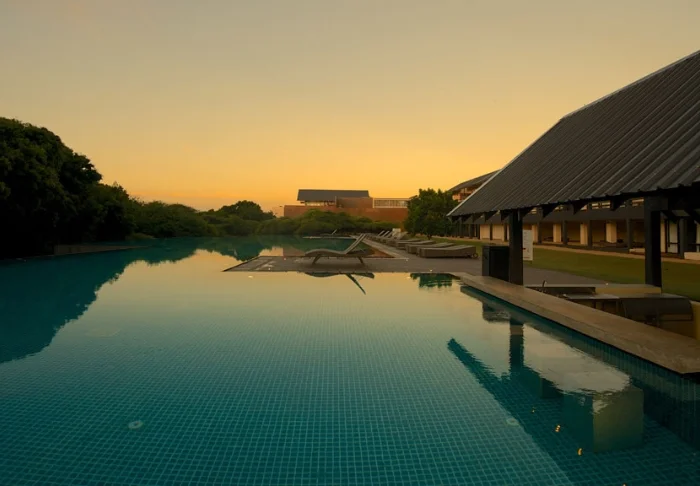 At Jetwing Yala, you’ll also find an impressive 75-metre pool complete with sun loungers, parasols, and a dedicated pool bar – the perfect spot to while away a few hours basking in the sun. If you feel like spoiling yourself, the hotel’s luxurious spa invites you to unwind with a selection of soothing treatments. For those preferring something more energetic, the fitness suite is fully equipped with both free weights and state-of-the-art machines.