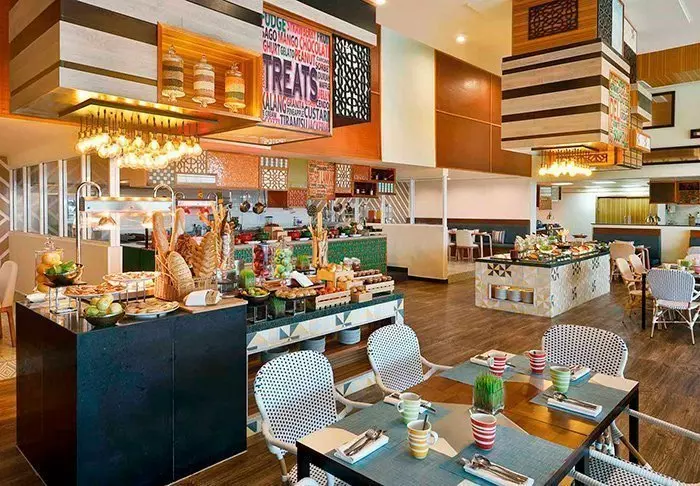 There are three restaurants and bars at the hotel. The Fusion restaurant serves an exquisite breakfast buffet as well as Asian and international dishes made from fresh, hand-picked ingredients. At the top of the hotel is the cosy Bommu Rooftop Bar, where you can enjoy cocktails, drinks and light snacks in the glow of the sunset from the comfortable rooftop furniture. There is also a phenomenal panoramic view from here of the bay, the beach and the hotel’s swimming pools. Between the beach and the large swimming pool is the Shoreline Beach Club for when you get a little peckish and thirsty in the middle of the day.