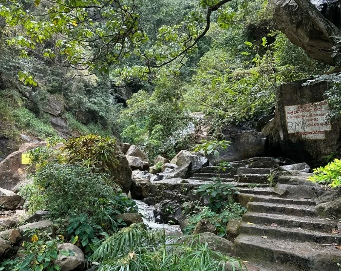 Your first stop is Ravana Falls, one of Sri Lanka’s widest and most dramatic waterfalls. Here, the water plunges 25 metres down the rocks, thundering so powerfully that you can almost feel the spray in the air. Legend has it that the demon king Ravana lived here, hiding Princess Sitha in a cave behind the falls—an enchanting tale that truly sparks the imagination as you gaze at the cascading torrents.