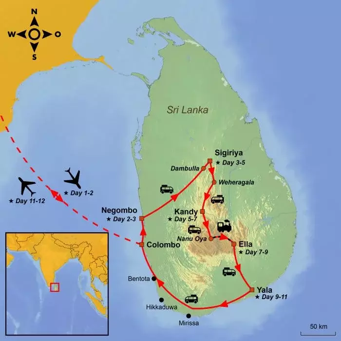 Start your day with the golden sands of Negombo’s beach before heading east towards Sri Lanka’s cultural triangle, offering insights into the country’s rich history and cultural heritage.