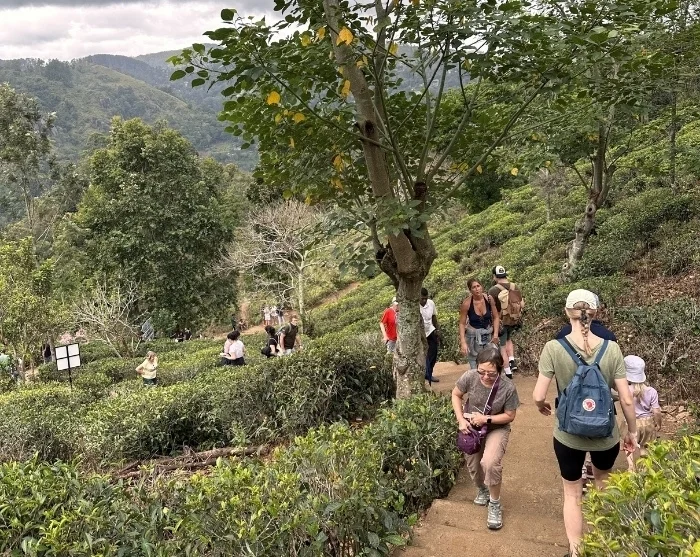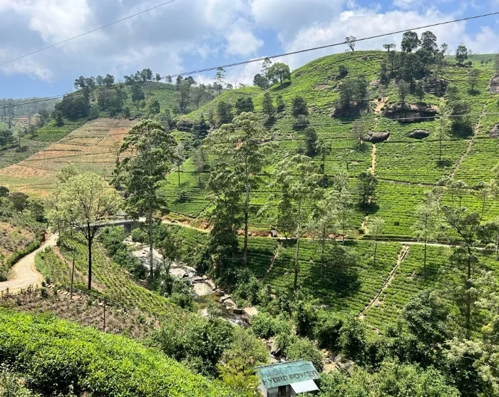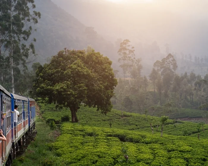 Here, you’ll board the classic train, which soon winds its way through Sri Lanka’s lush highlands. Settle in comfortably and enjoy your packed refreshments as the train gently chugs through sweeping bends, unveiling a landscape of vibrant green tea plantations, mist-clad peaks, and small villages, where children beam with joy and wave as the train passes by.